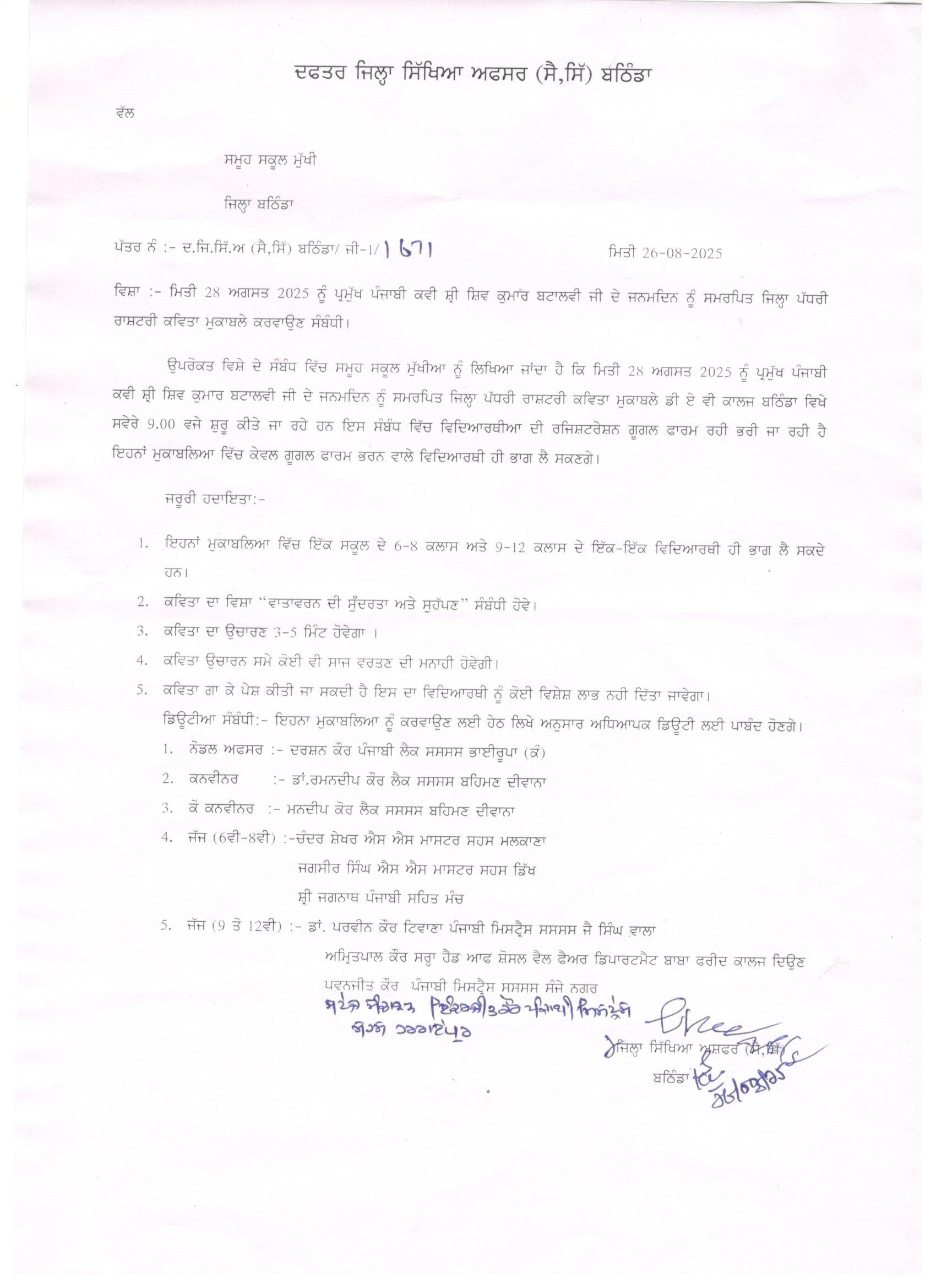 | DEO | ਕਵਿਤਾ ਉਚਾਰਣ ਮੁਕਾਬਲੇ | 11-07-2025 16:11 | Download |